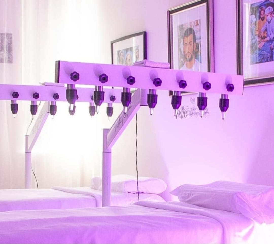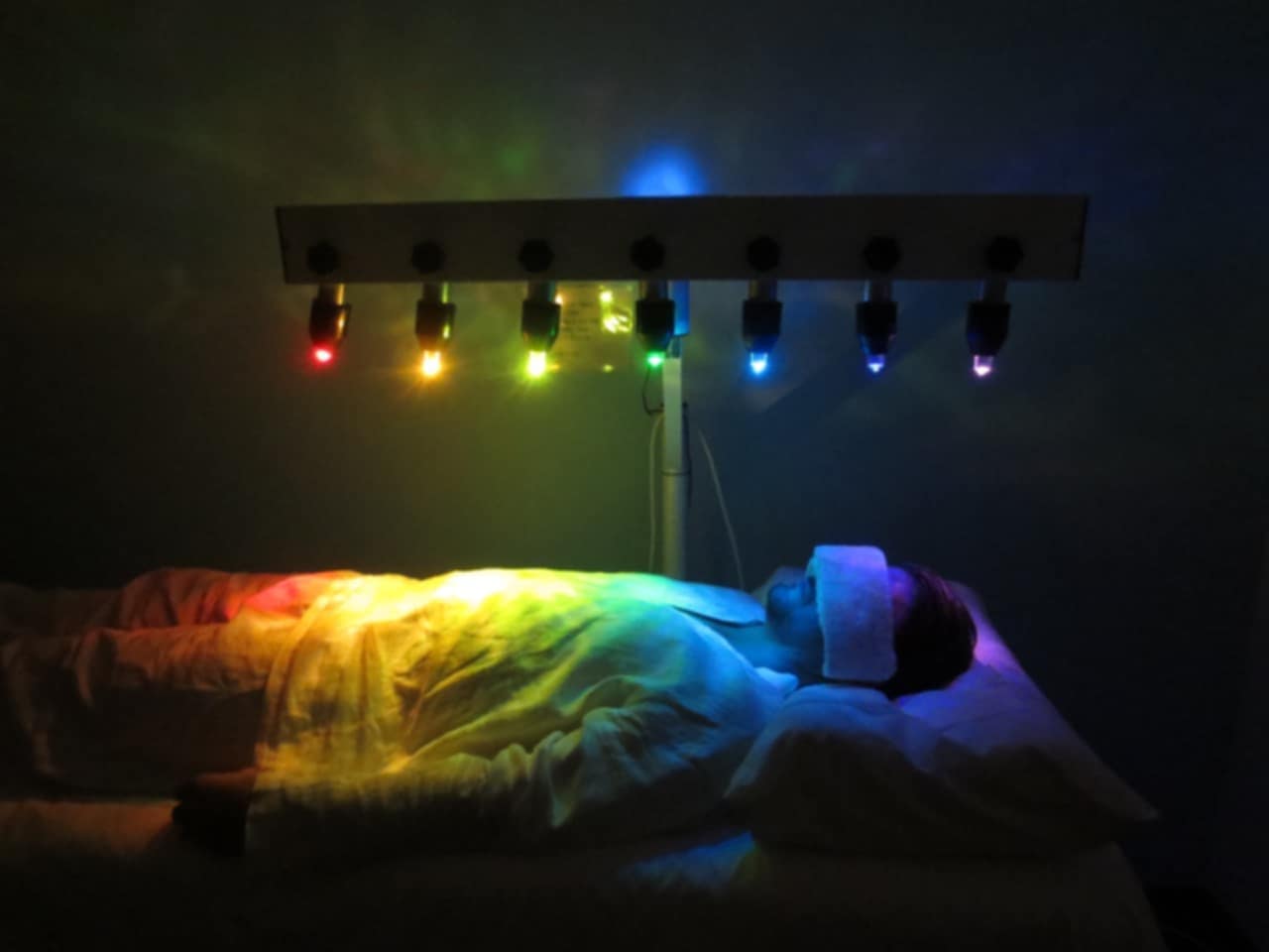 Crystal bed therapy is a holistic healing technique that combines the energetic properties of crystals with light therapy. In this practice, crystals—usually quartz—are suspended above the body, with each crystal aligned to one of the seven chakras or energy centers. Colored lights that correspond to the chakra colors are then directed through the crystals onto the body. The goal of crystal bed therapy is to balance the body's energy, cleanse blockages, and promote physical, emotional, and spiritual well-being. It is believed that the amplified energy from the crystals, combined with the healing frequencies of the lights, can enhance relaxation, stimulate healing, and raise one's vibrational frequency. Often used in conjunction with meditation or other therapeutic practices, crystal bed therapy aims to create a deep sense of inner harmony and renewal.